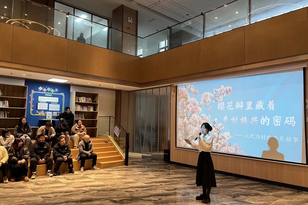 兴化市乡村振兴志愿者陈怡铃讲述,八尺沟村以生态文旅为脉、能人回乡为翼,让万亩荒滩变身樱花景区,村民变身股民,以农旅融合解锁乡村振兴密码,续写水乡共富传奇。